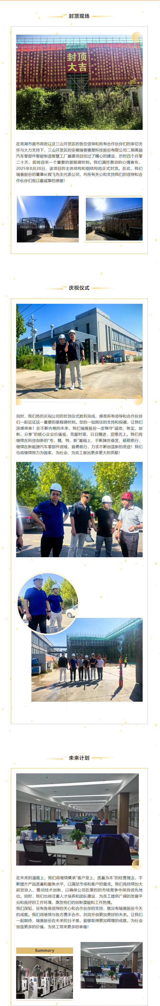 28/2025-08熱烈慶祝瑞普股份蕪湖總部二期智能制造智慧工廠封頂大吉